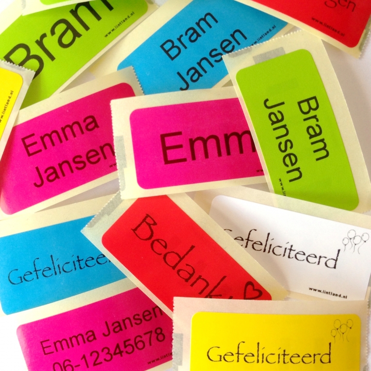 30 stuks - Stickers met uw eigen tekst diverse kleuren